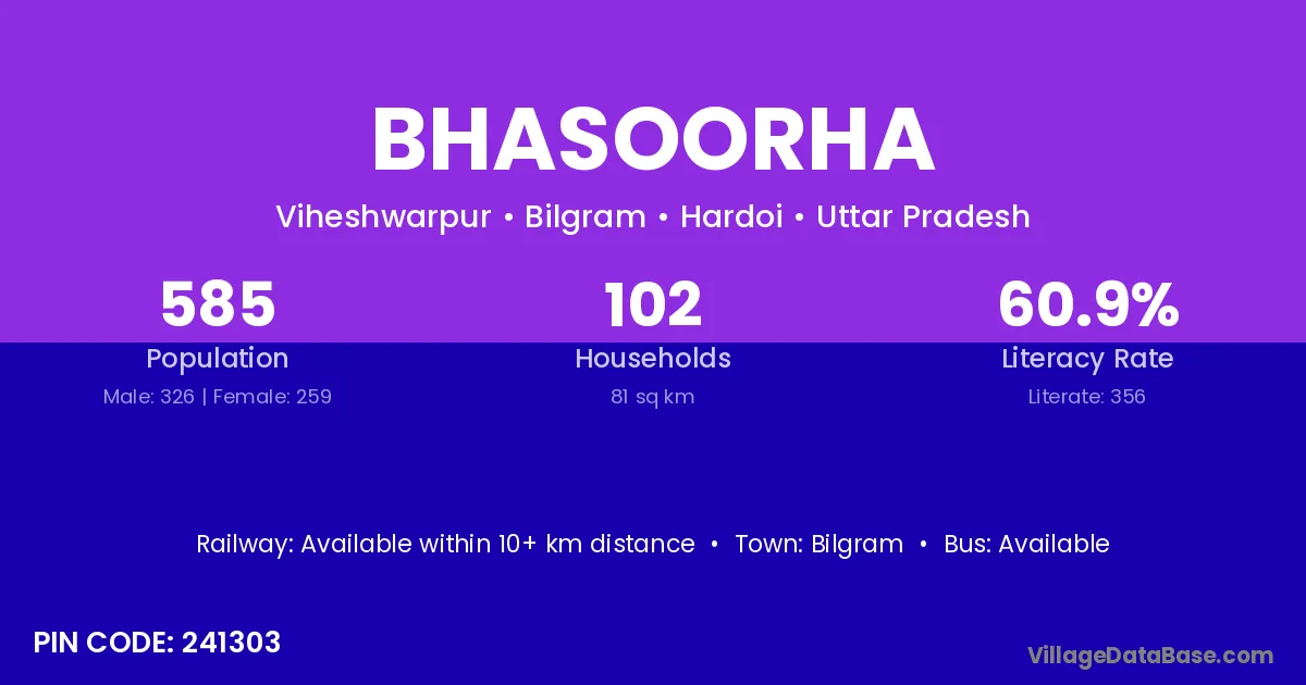 According to Census 2011 information, the village code of Bhasoorha village is 241303.