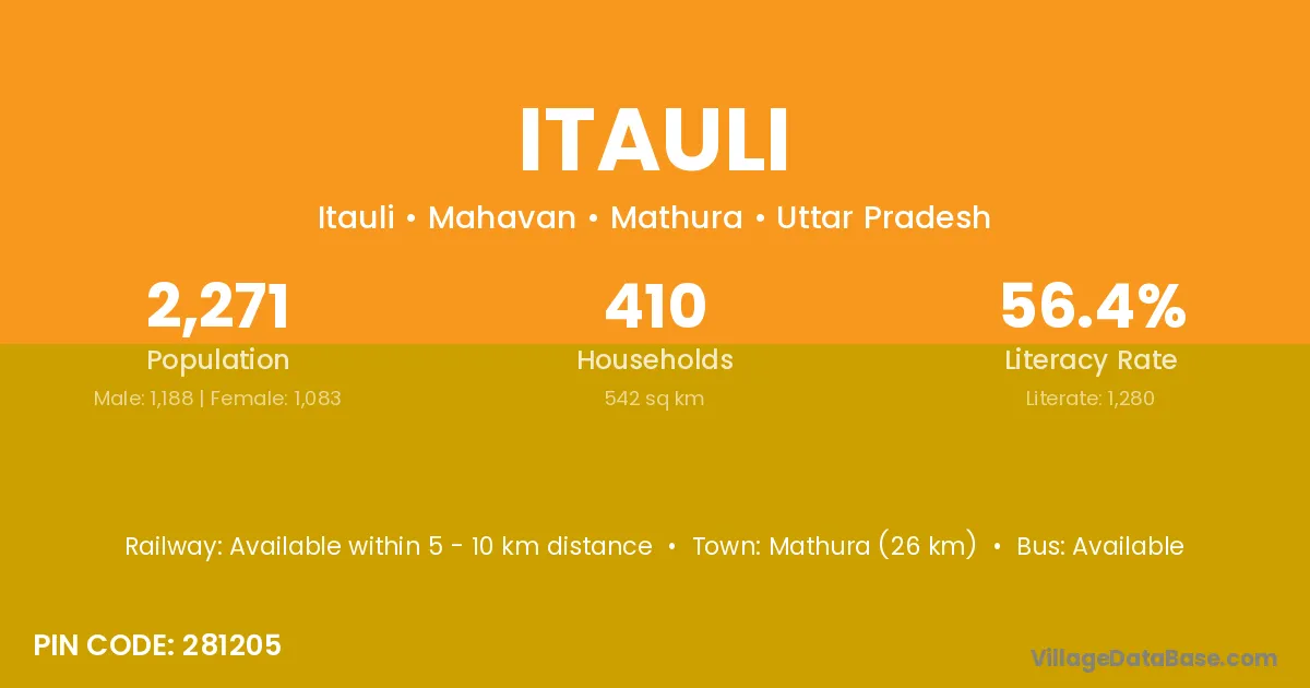 Bilgram (5 km) is the nearest town to Itauli village for major economic activities and is located approximately 5 km away.