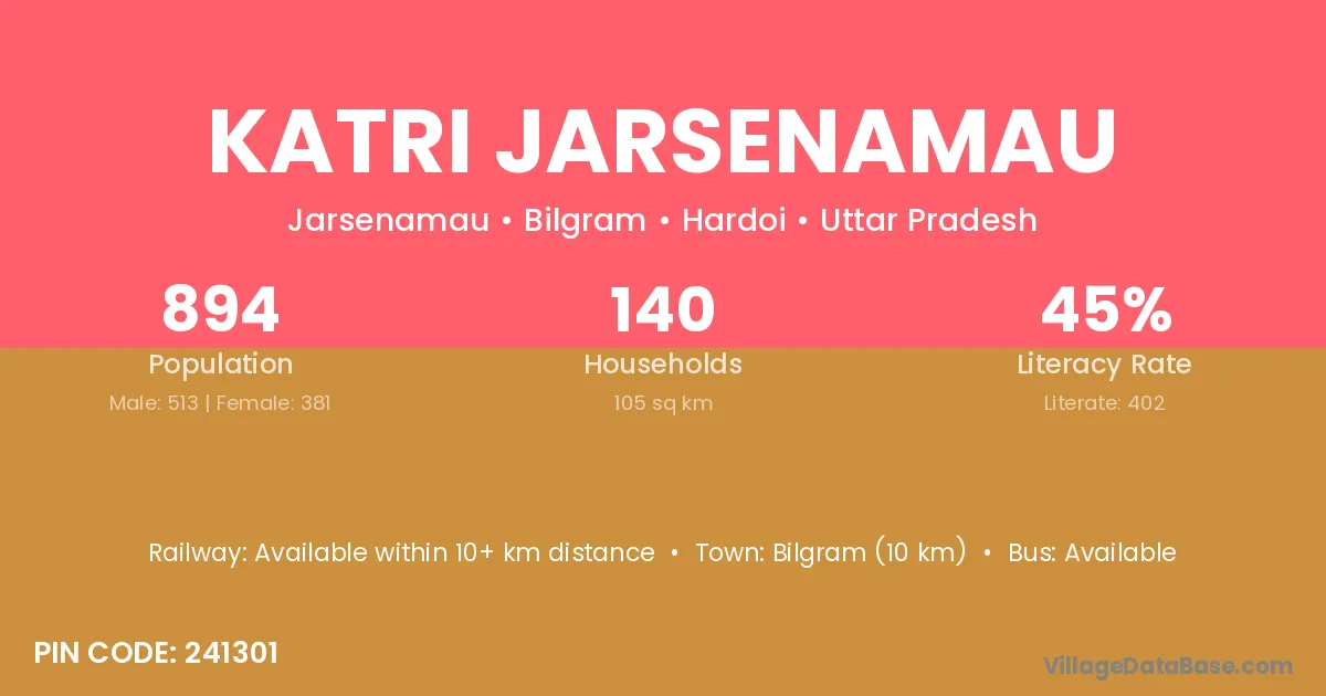 Bilgram (10 km) is the nearest town to Katri Jarsenamau village for major economic activities and is located approximately 10 km away.