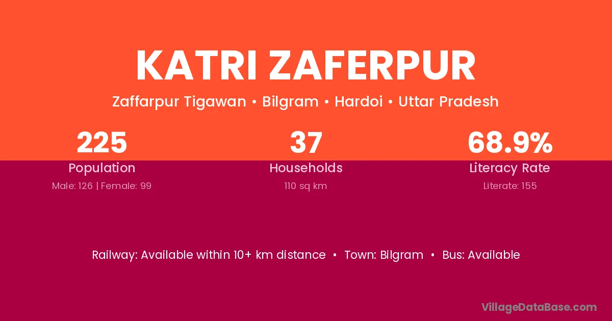 Katri Zaferpur village has a total population of 225 people, of which 126 are males and 99 are females.