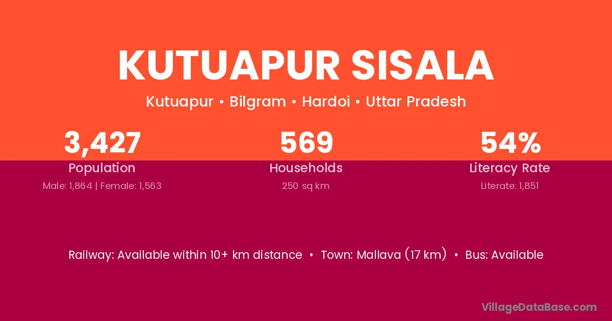 Kutuapur Sisala village has a total population of 3,427 people, of which 1,864 are males and 1,563 are females.