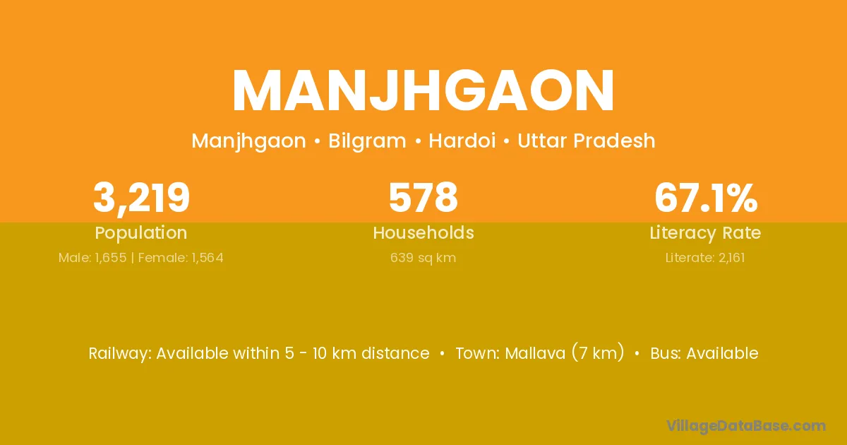 Mallava (7 km) is the nearest town to Manjhgaon village for major economic activities and is located approximately 7 km away.