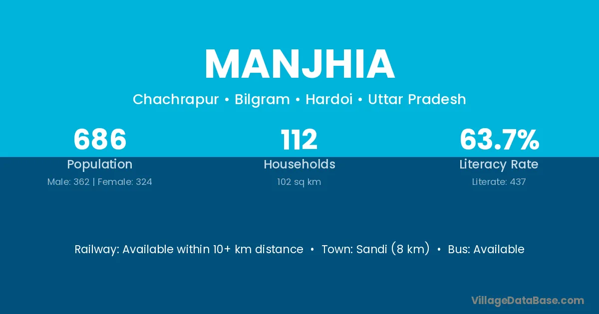 Manjhia village has a total population of 686 people, of which 362 are males and 324 are females.