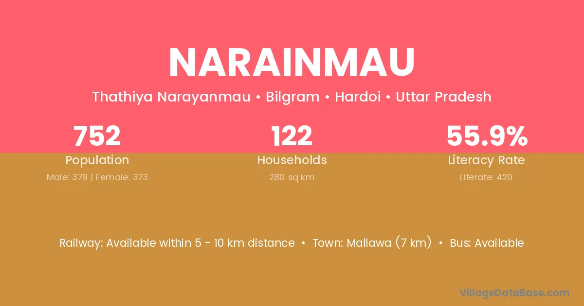 Mallawa (7 km) is the nearest town to Narainmau village for major economic activities and is located approximately 7 km away.