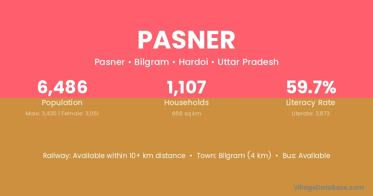 Bilgram (4 km) is the nearest town to Pasner village for major economic activities and is located approximately 4 km away.