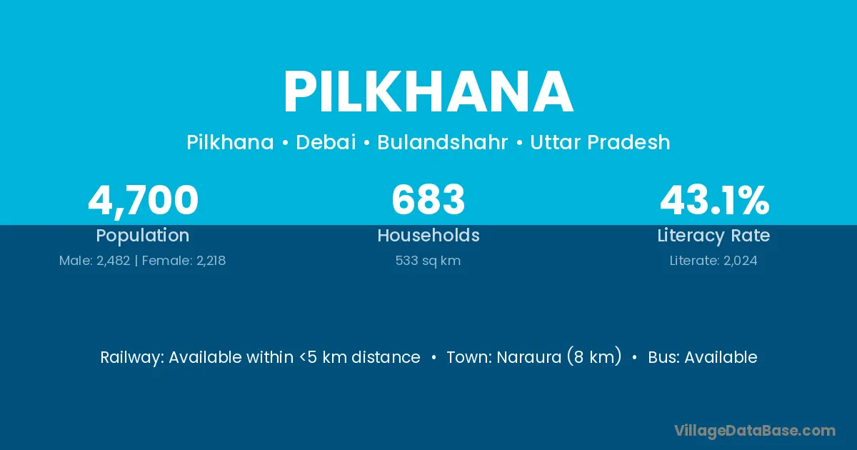 Madhoganj (6 km) is the nearest town to Pilkhana village for major economic activities and is located approximately 6 km away.
