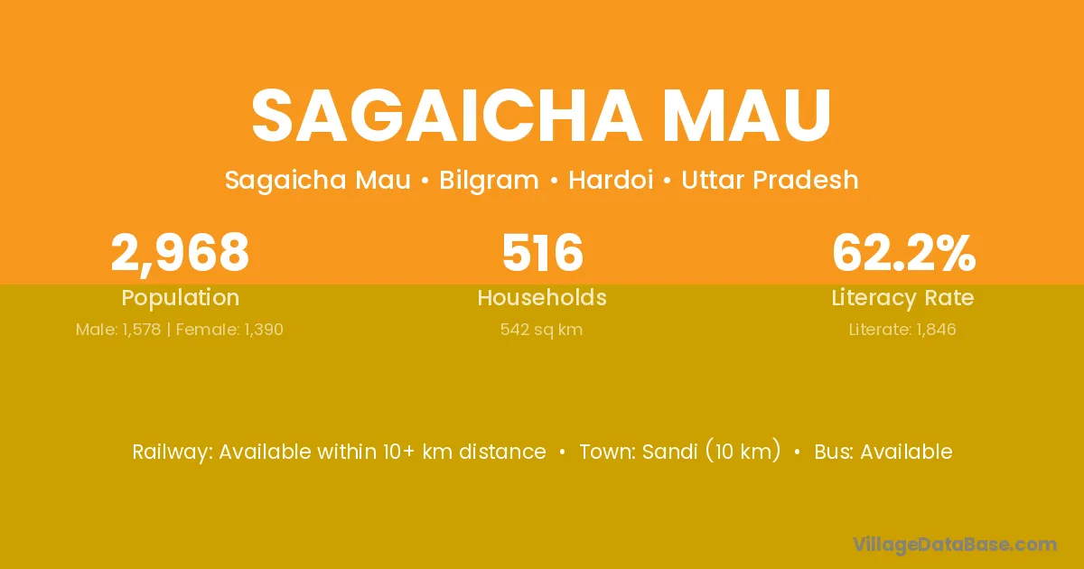 Sagaicha Mau village has a total population of 2,968 people, of which 1,578 are males and 1,390 are females.