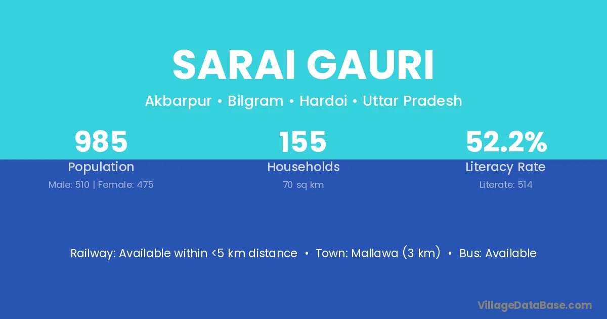 Mallawa (3 km) is the nearest town to Sarai Gauri village for major economic activities and is located approximately 3 km away.