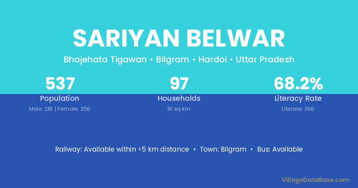 Bilgram is the nearest town to Sariyan Belwar village for major economic activities