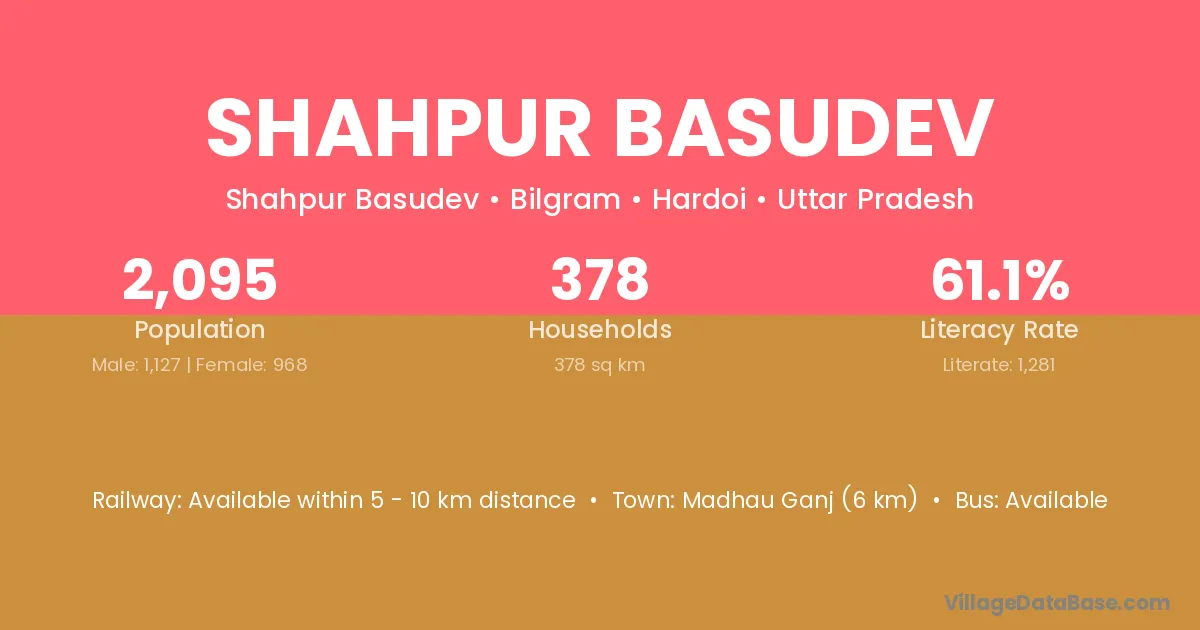 Madhau Ganj (6 km) is the nearest town to Shahpur Basudev village for major economic activities and is located approximately 6 km away.