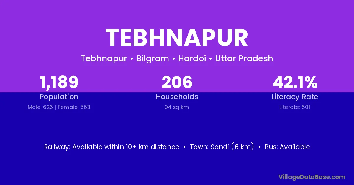 Tebhnapur village has a total population of 1,189 people, of which 626 are males and 563 are females.