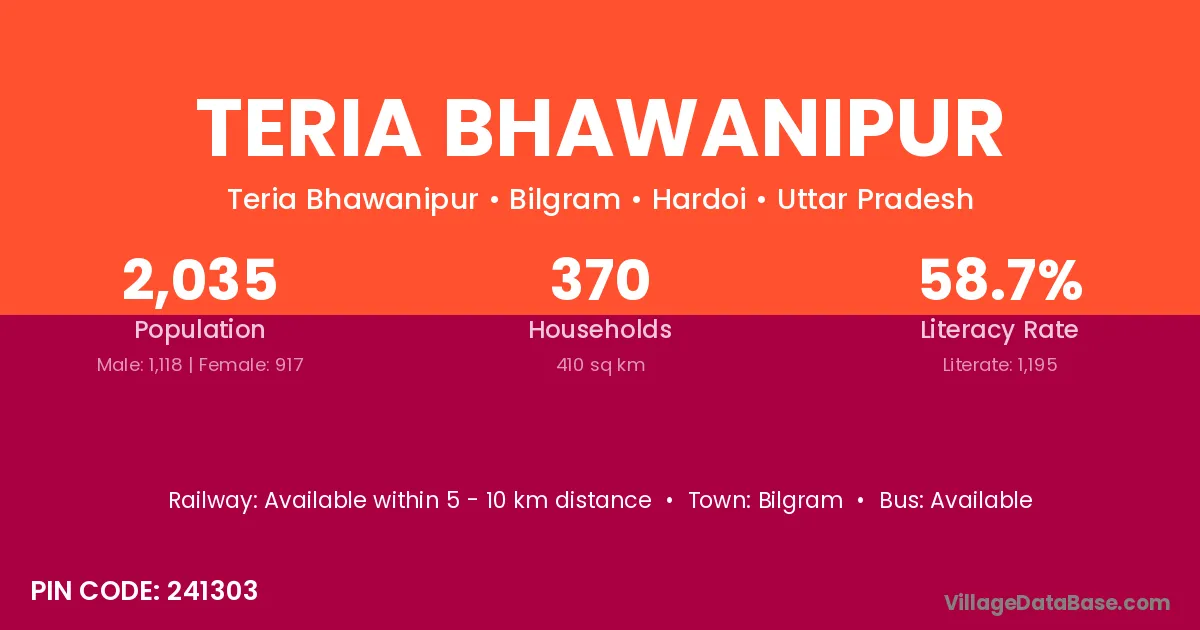 Bilgram is the nearest town to Teria Bhawanipur village for major economic activities