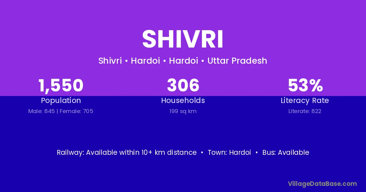 Hardoi is the nearest town to Shivri village for major economic activities
