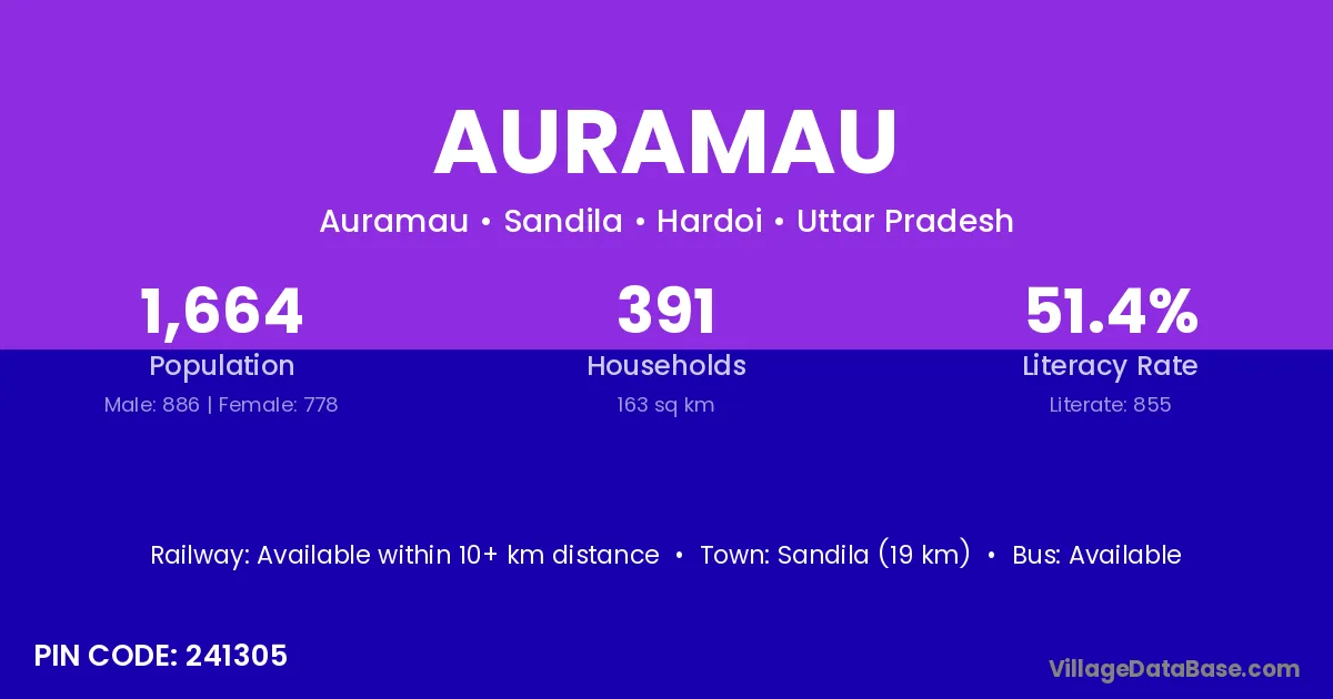 Sandila (19 km) is the nearest town to Auramau village for major economic activities and is located approximately 19 km away.