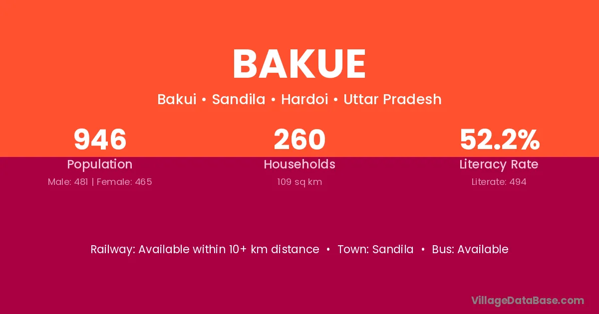 Bakue village has a total population of 946 people, of which 481 are males and 465 are females.