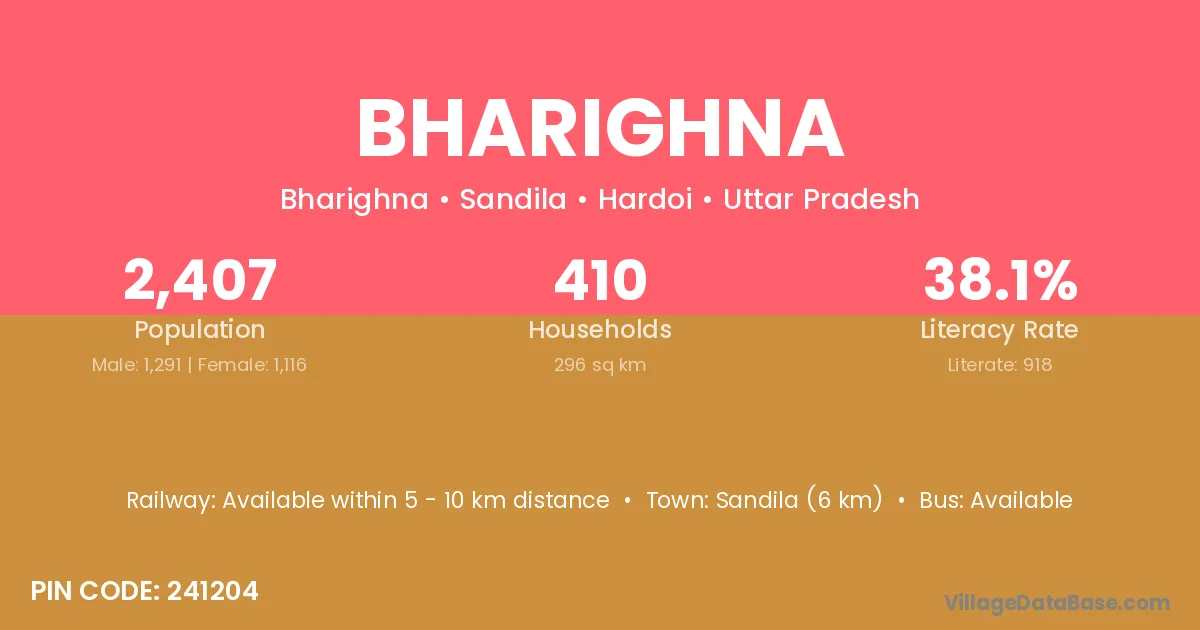 Sandila (6 km) is the nearest town to Bharighna village for major economic activities and is located approximately 6 km away.
