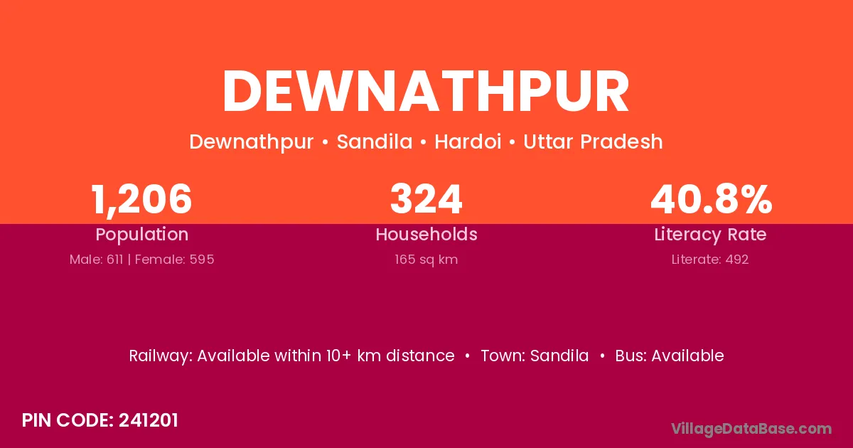 Dewnathpur village has a total population of 1,206 people, of which 611 are males and 595 are females.