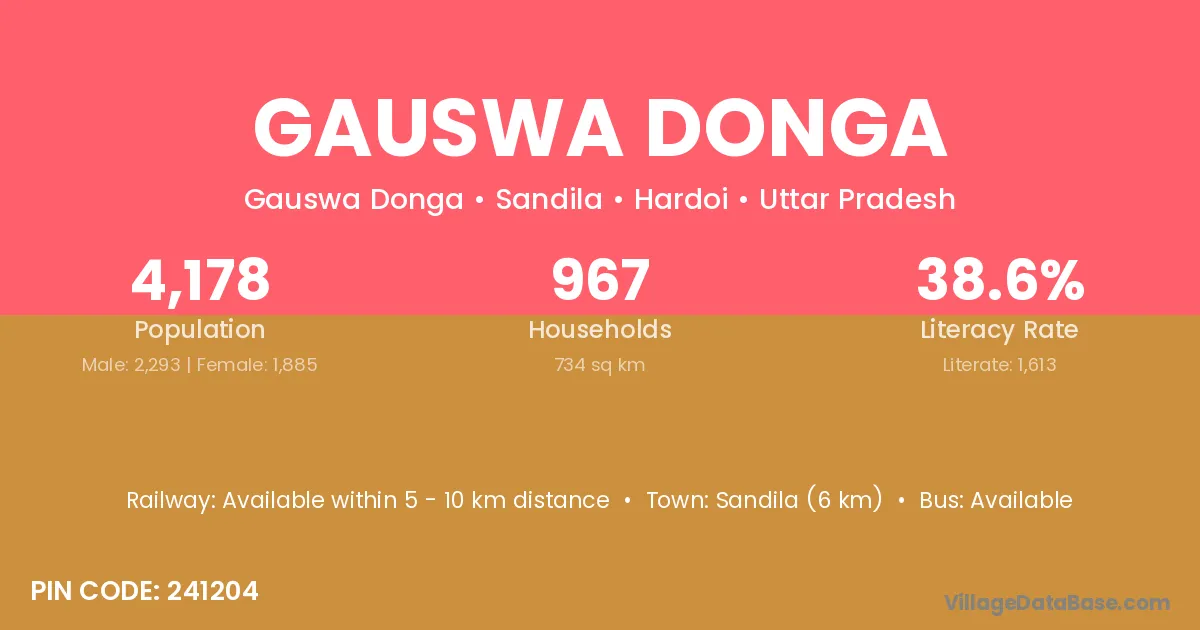 Sandila (6 km) is the nearest town to Gauswa Donga village for major economic activities and is located approximately 6 km away.