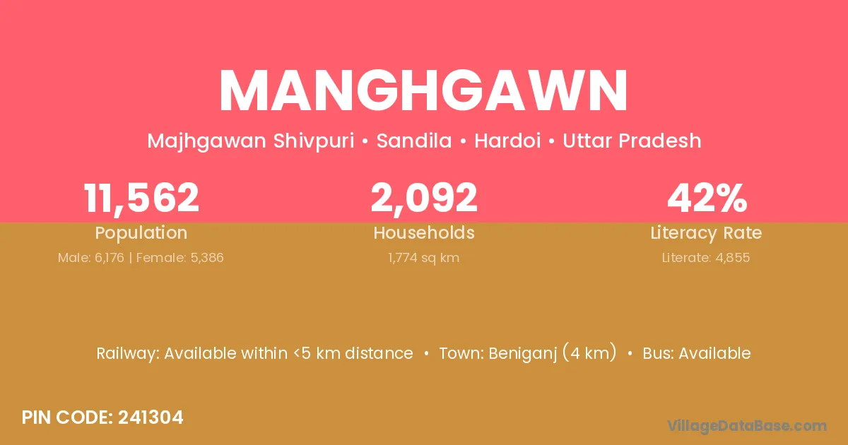 Beniganj (4 km) is the nearest town to Manghgawn village for major economic activities and is located approximately 4 km away.