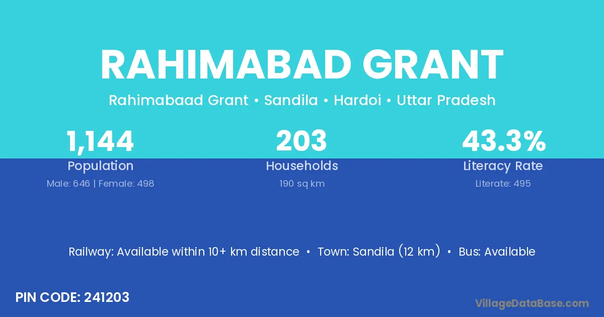 Sandila (12 km) is the nearest town to Rahimabad Grant village for major economic activities and is located approximately 12 km away.