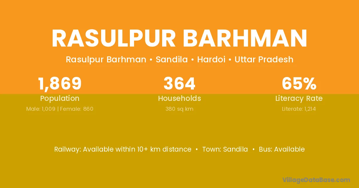 Sandila is the nearest town to Rasulpur Barhman village for major economic activities