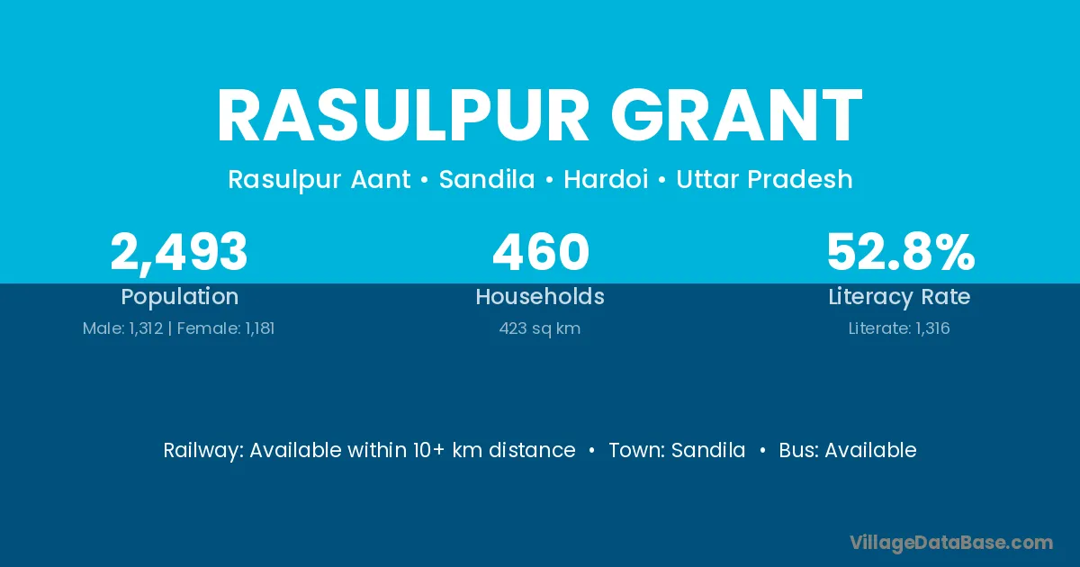 Rasulpur Grant village has a total population of 2,493 people, of which 1,312 are males and 1,181 are females.