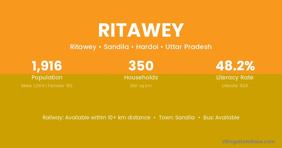 Ritawey village has a total population of 1,916 people, of which 1,004 are males and 912 are females.
