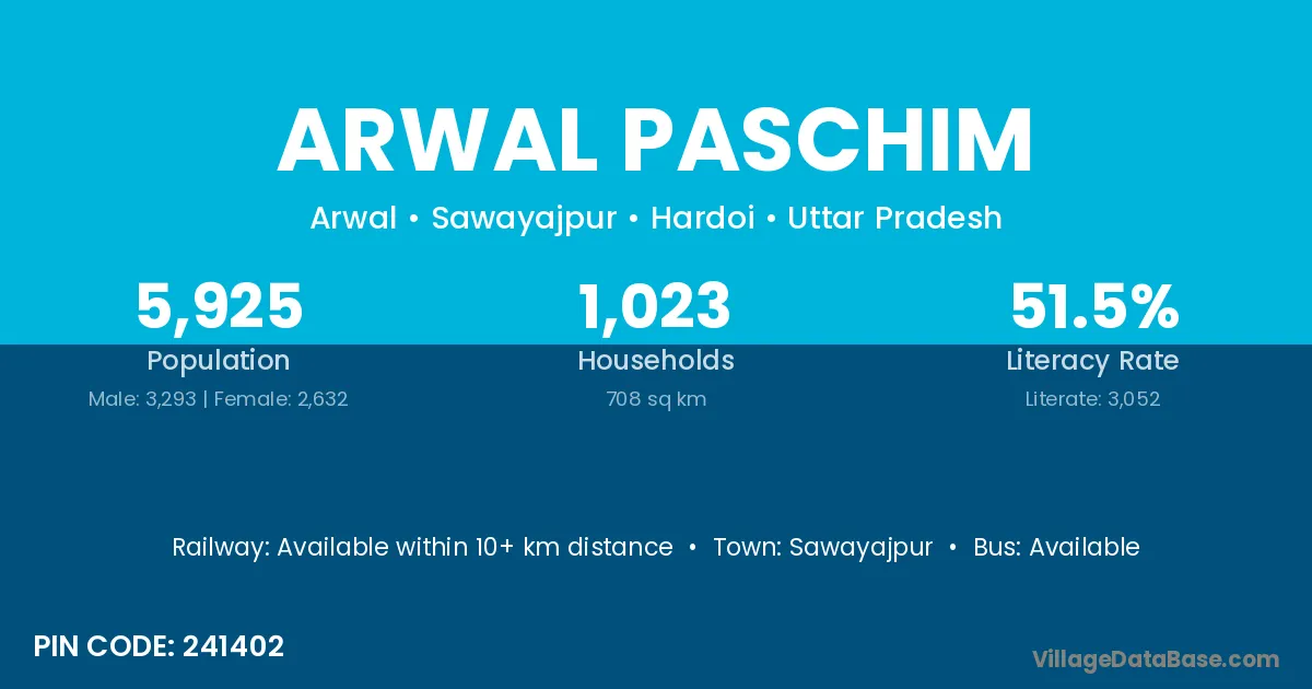 According to Census 2011 information, the village code of Arwal Paschim village is 241402.