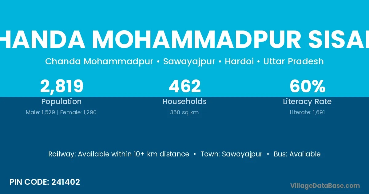 There are approximately 462 households in Chanda Mohammadpur Sisala village.