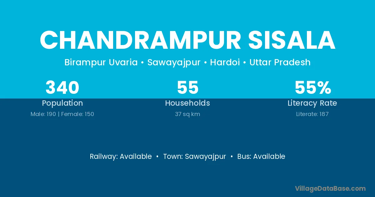 Chandrampur Sisala village has a total population of 340 people, of which 190 are males and 150 are females.