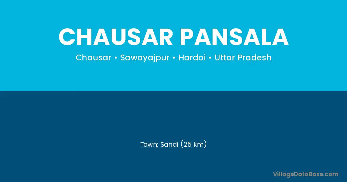 Sandi (25 km) is the nearest town to Chausar Pansala village for major economic activities and is located approximately 25 km away.