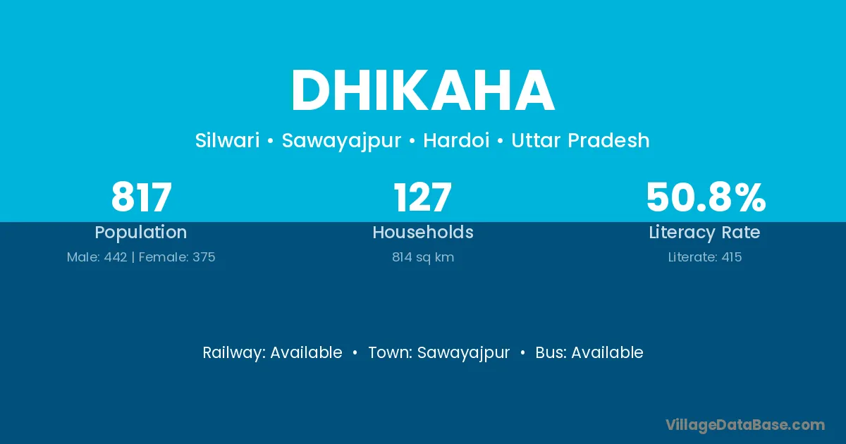 Dhikaha village has a total population of 817 people, of which 442 are males and 375 are females.