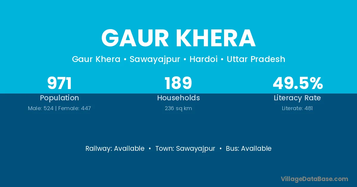 Gaur Khera village has a total population of 971 people, of which 524 are males and 447 are females.