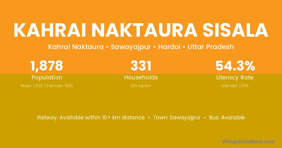 Kahrai Naktaura Sisala village has a total population of 1,878 people, of which 1,022 are males and 856 are females.