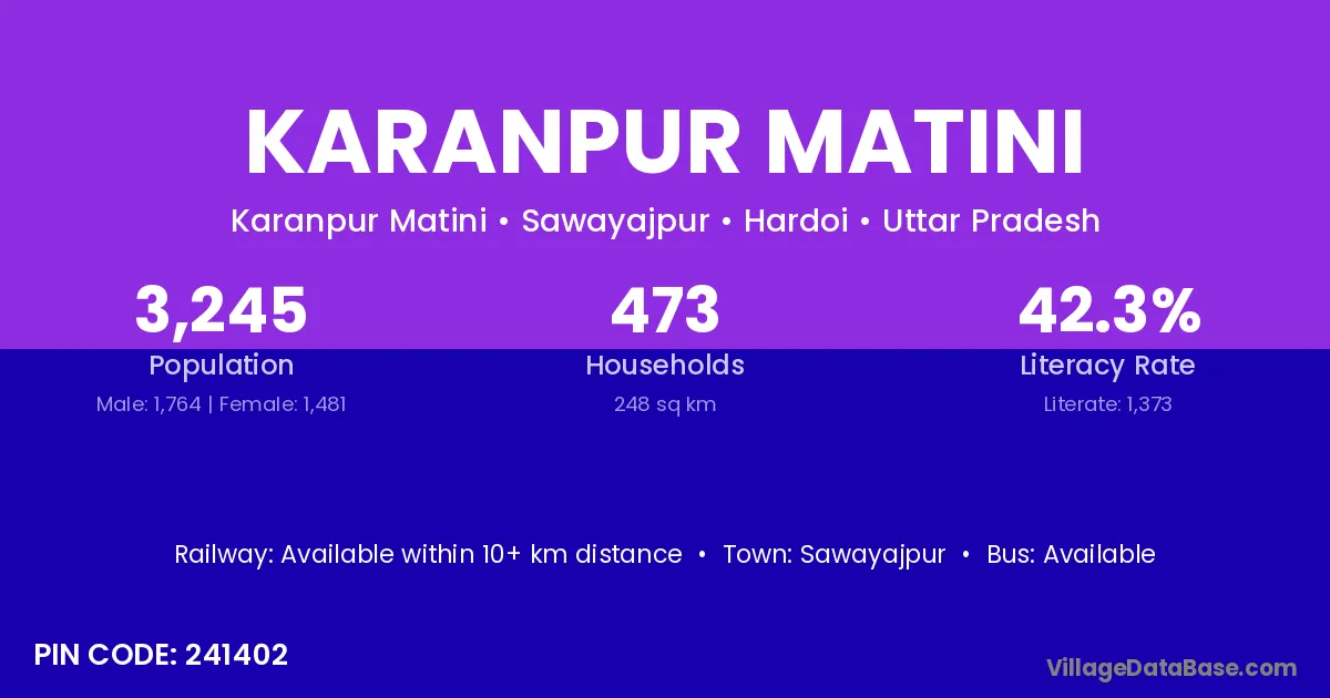 According to Census 2011 information, the village code of Karanpur Matini village is 241402.