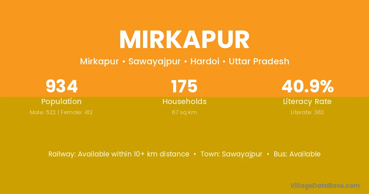 Sawayajpur is the nearest town to Mirkapur village for major economic activities