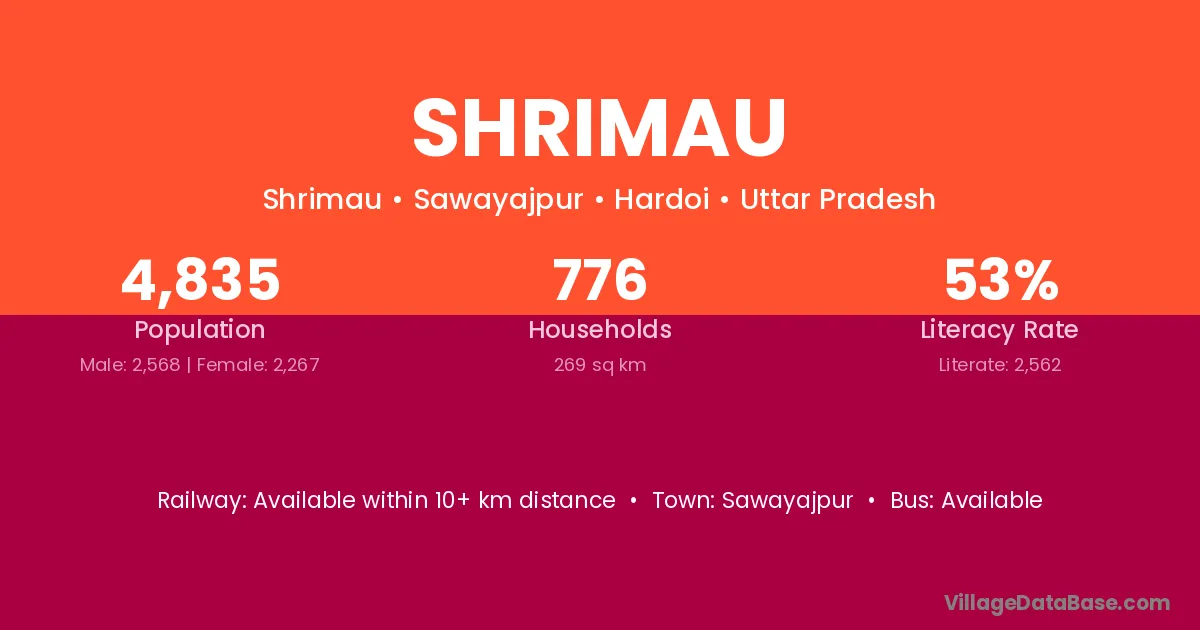 Shrimau village has a total population of 4,835 people, of which 2,568 are males and 2,267 are females.