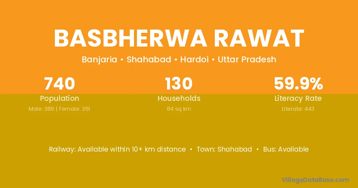 Basbherwa Rawat village has a total population of 740 people, of which 389 are males and 351 are females.