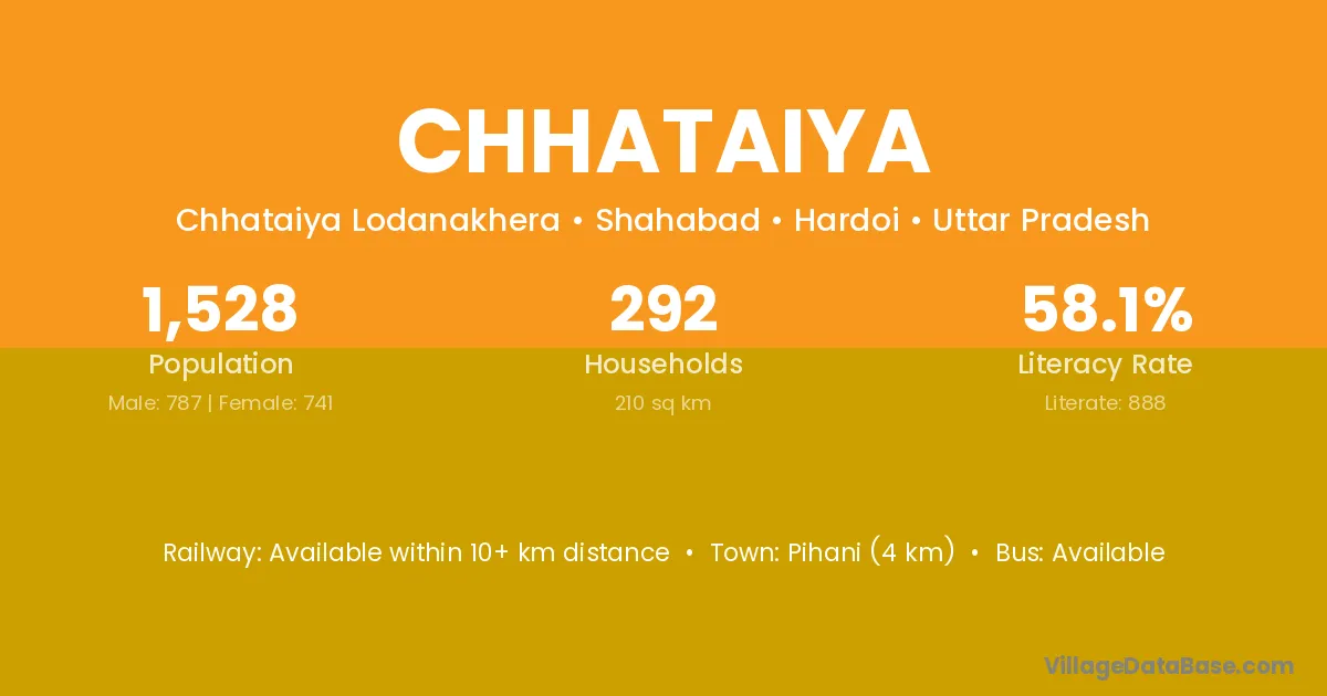 Pihani (4 km) is the nearest town to Chhataiya village for major economic activities and is located approximately 4 km away.