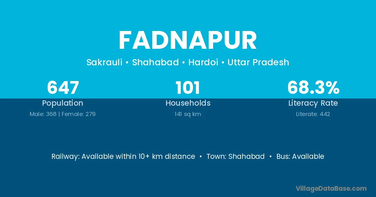 Fadnapur village has a total population of 647 people, of which 368 are males and 279 are females.