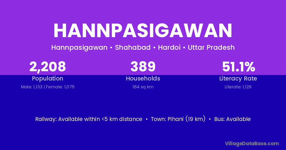 Pihani (19 km) is the nearest town to Hannpasigawan village for major economic activities and is located approximately 19 km away.