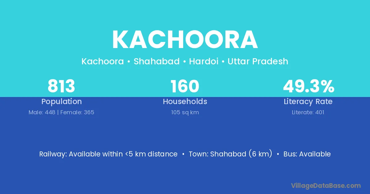 Shahabad (6 km) is the nearest town to Kachoora village for major economic activities and is located approximately 6 km away.