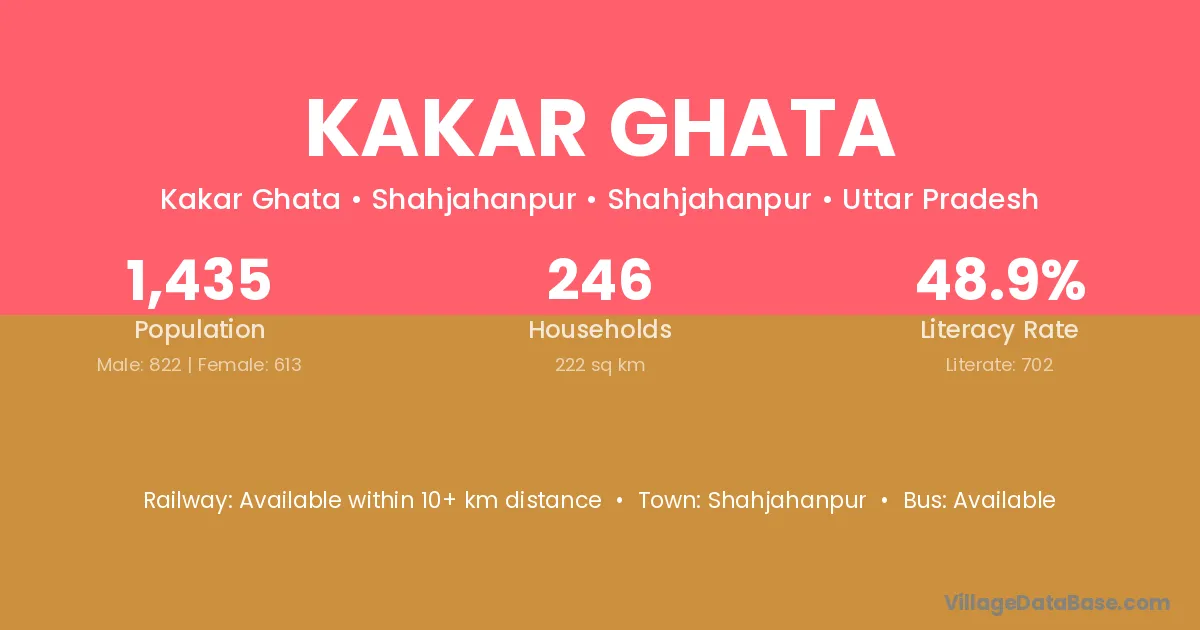 Shahabad (5 km) is the nearest town to Kakar Ghata village for major economic activities and is located approximately 5 km away.