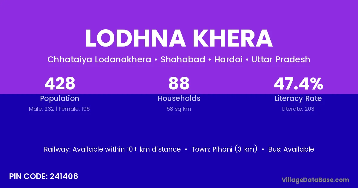 Pihani (3 km) is the nearest town to Lodhna Khera village for major economic activities and is located approximately 3 km away.