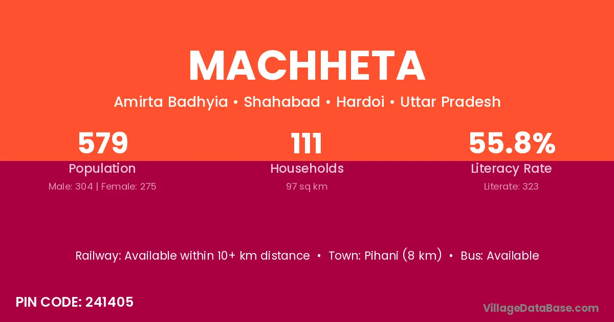Machheta village has a total population of 579 people, of which 304 are males and 275 are females.