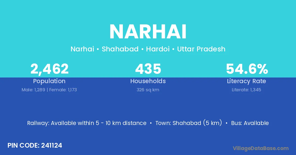 Shahabad (5 km) is the nearest town to Narhai village for major economic activities and is located approximately 5 km away.