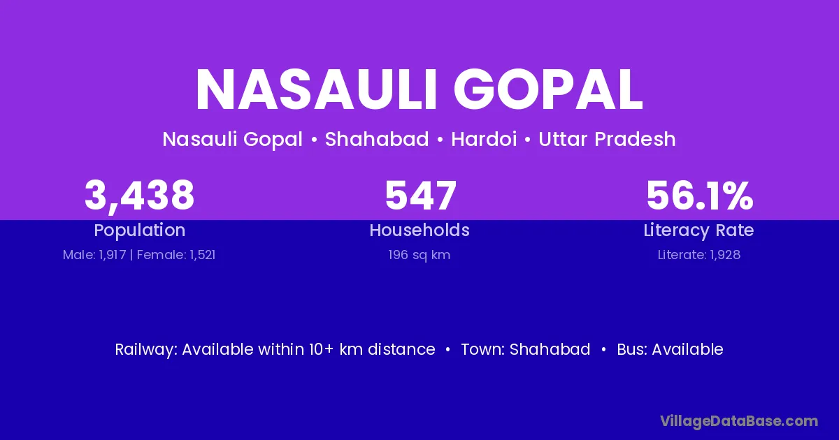 Shahabad is the nearest town to Nasauli Gopal village for major economic activities