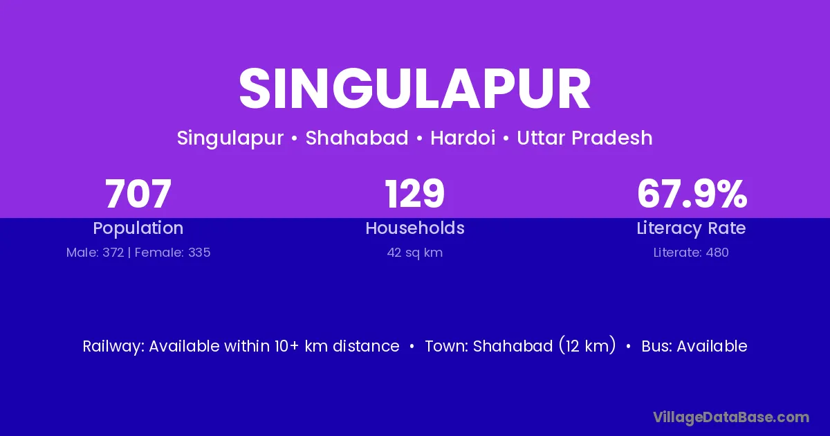 Shahabad (12 km) is the nearest town to Singulapur village for major economic activities and is located approximately 12 km away.