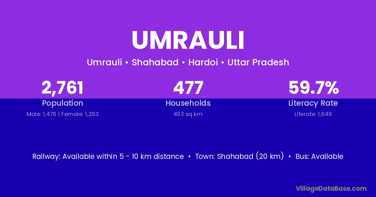 Shahabad (20 km) is the nearest town to Umrauli village for major economic activities and is located approximately 20 km away.