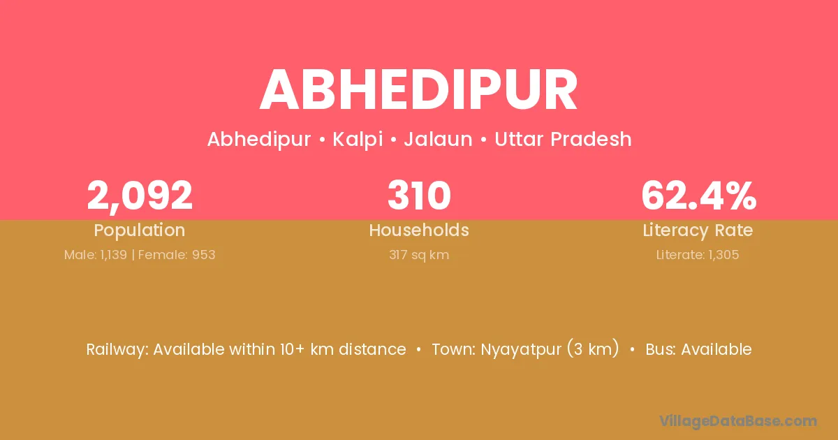 Nyayatpur (3 km) is the nearest town to Abhedipur village for major economic activities and is located approximately 3 km away.